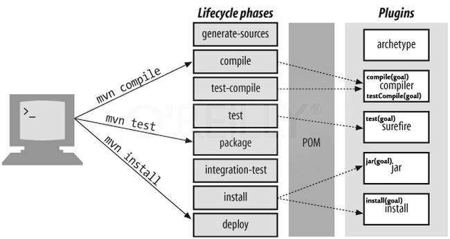 각각의 라이프 사이클에는 연속된 여러개의 페이즈(phase)가 존재하고 있습니다. 각 페이즈는 특정 작업에 대한 책임들을 가지고 있으며, 각 페이즈는 독립적이지 않고 연속적-순차적으로 실행됩니다. 예를 들면 'mvn deploy' 를 실행하면 deploy 라는 페이즈만 실행 되는것이 아닌, 컴파일부터 모든 페이즈가 진행됩니다.